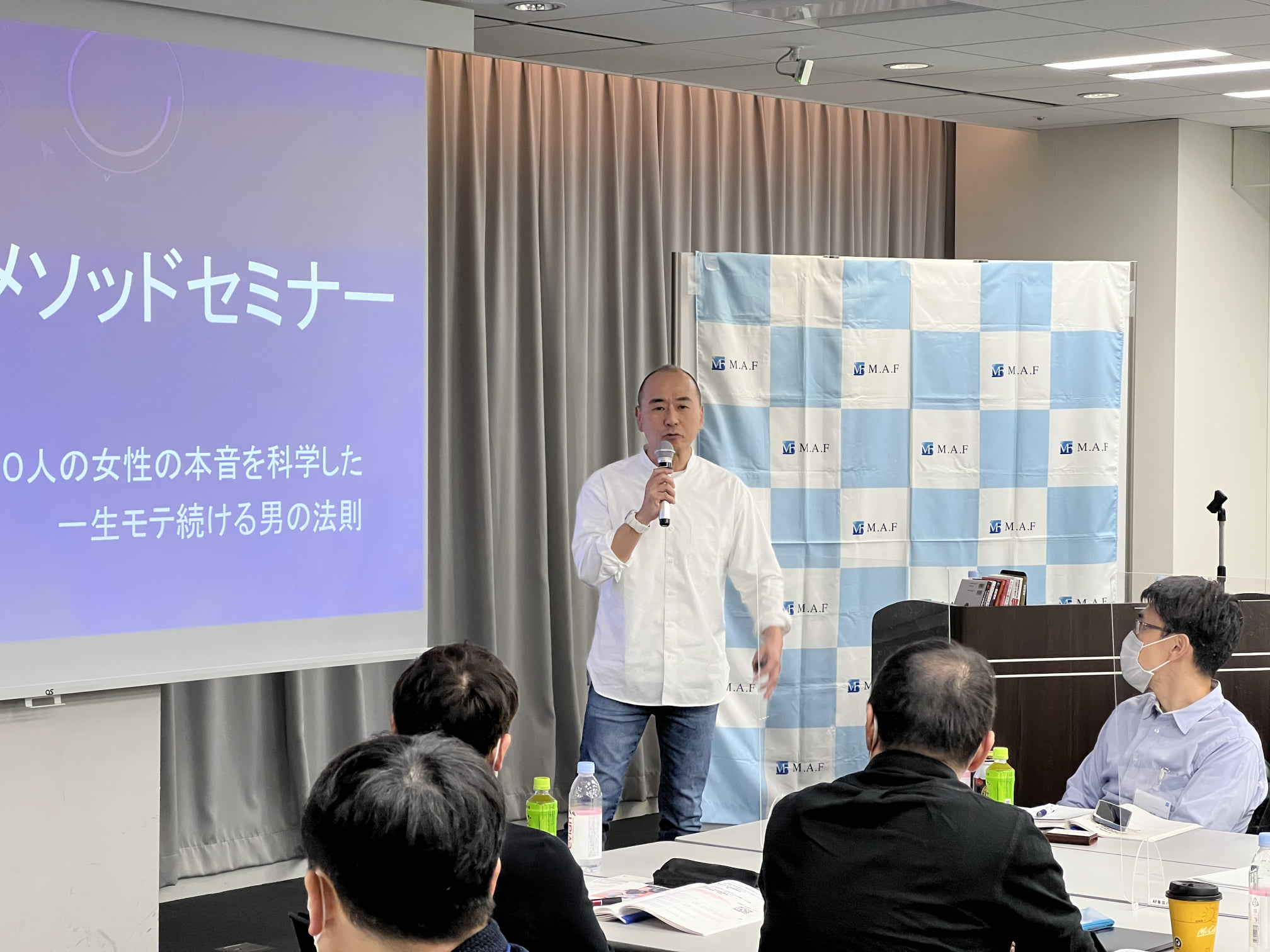 毎回MAFセミナーでは、外部からゲスト講師を招聘しています。バリのアニキからの教えで「斜め向かいの人」との出会いが良い刺激になると言われたことに感銘を受け、今回は元AV監督である溜池ゴロー氏をゲスト講師とし、これまで2000人以上の女性と人生と本音を聞いてこられた溜池ゴローさんだからこその女性とのコミュニケーションについてお話をいただきました。