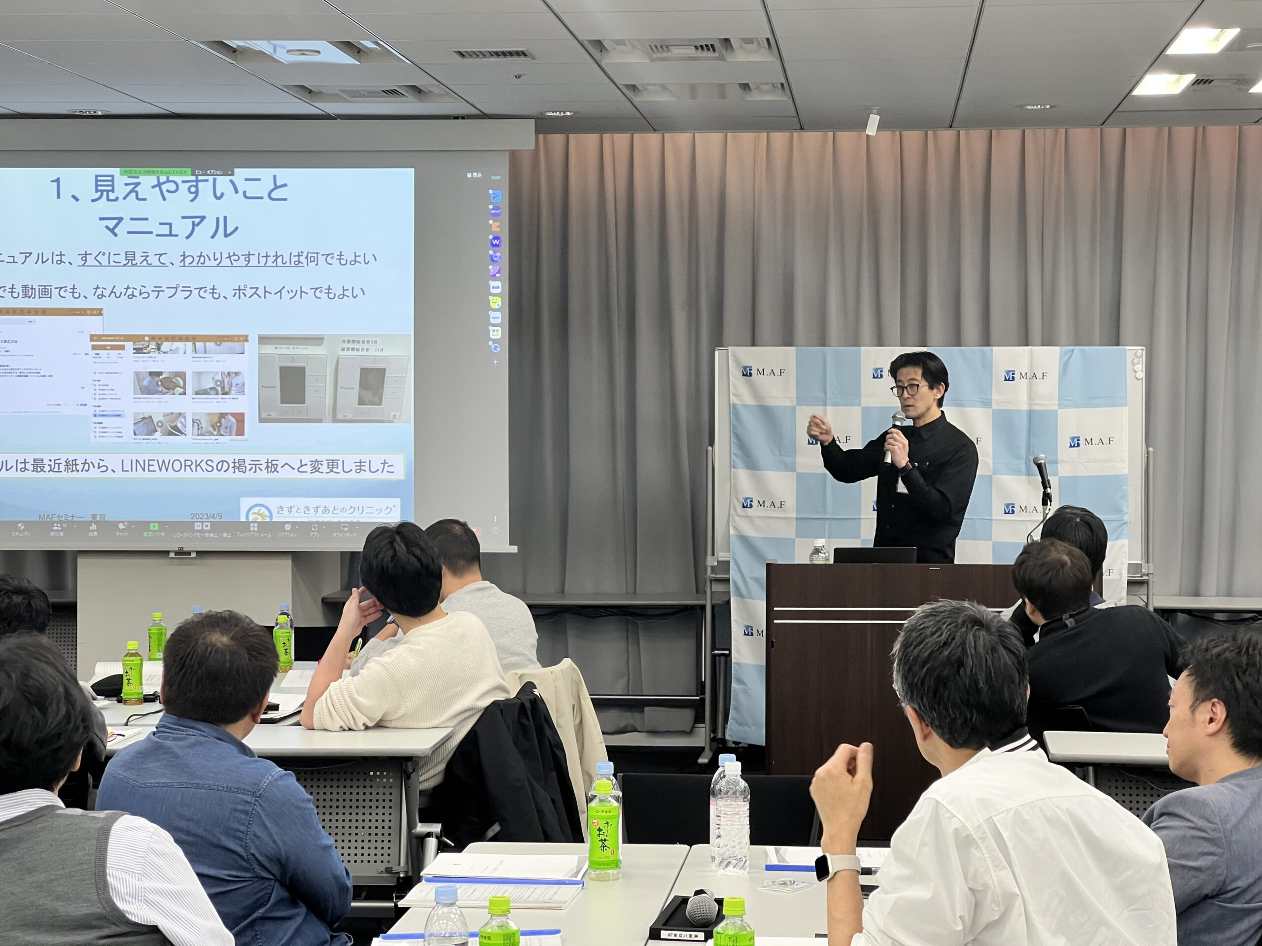 M.A.Fのクリニック経営セミナーでは毎回「10分プレゼンテーション」というコンテンツがあります。それはM.A.Fに参加しているクリニックの院長が自院の取り組みを参加している院長に向けて10分間取り組みの発表をします。